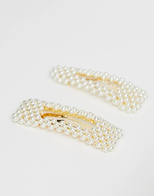 Asos Design Pack Of 2 Large Pearl Snap Hair Clips